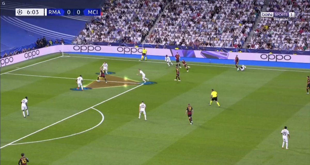اهمية لاعبين الوسط فالفيردي، كروس في الجانب الدفاعي كان له دور كبير في ايقاف اي زيادة لدي بروين او غاندوغان في انصاف المساحات او بين الخطوط