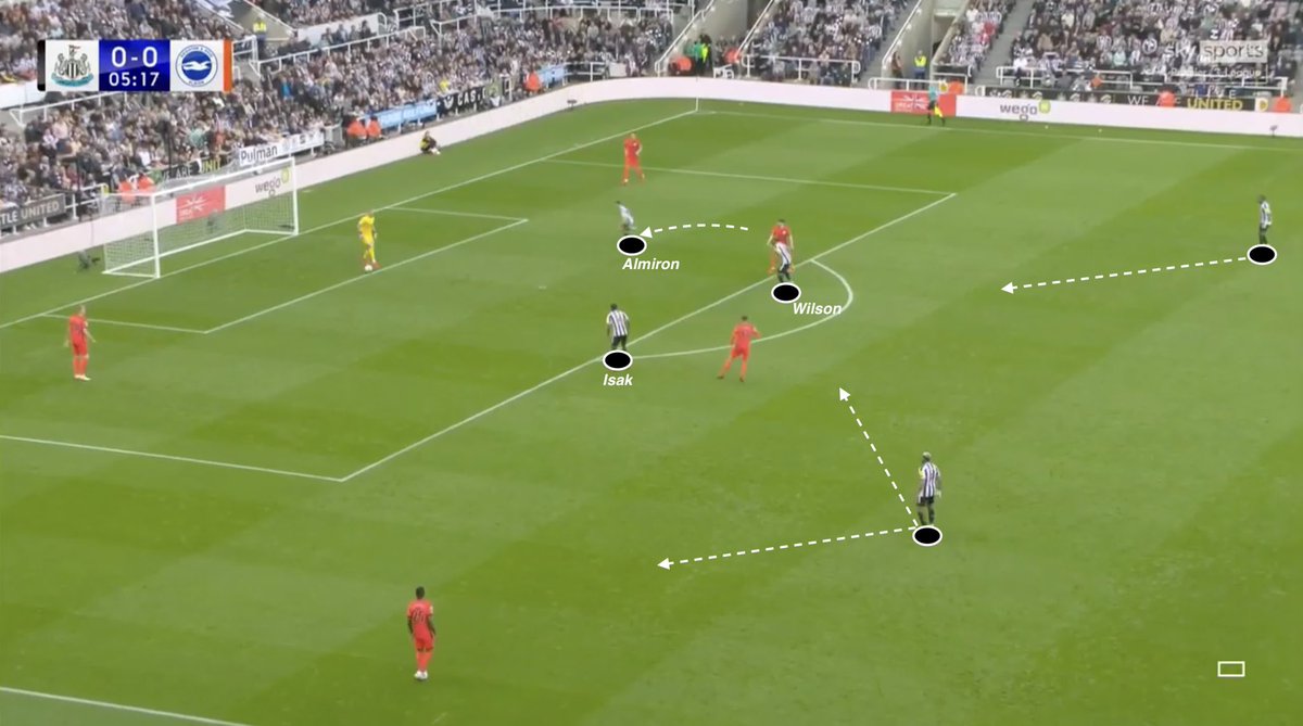 To complete this thread, a brilliant set pieces analysis from @Edit_Kev , illustrating the offensive behavior of Newcastle all over the pitch yesterday.