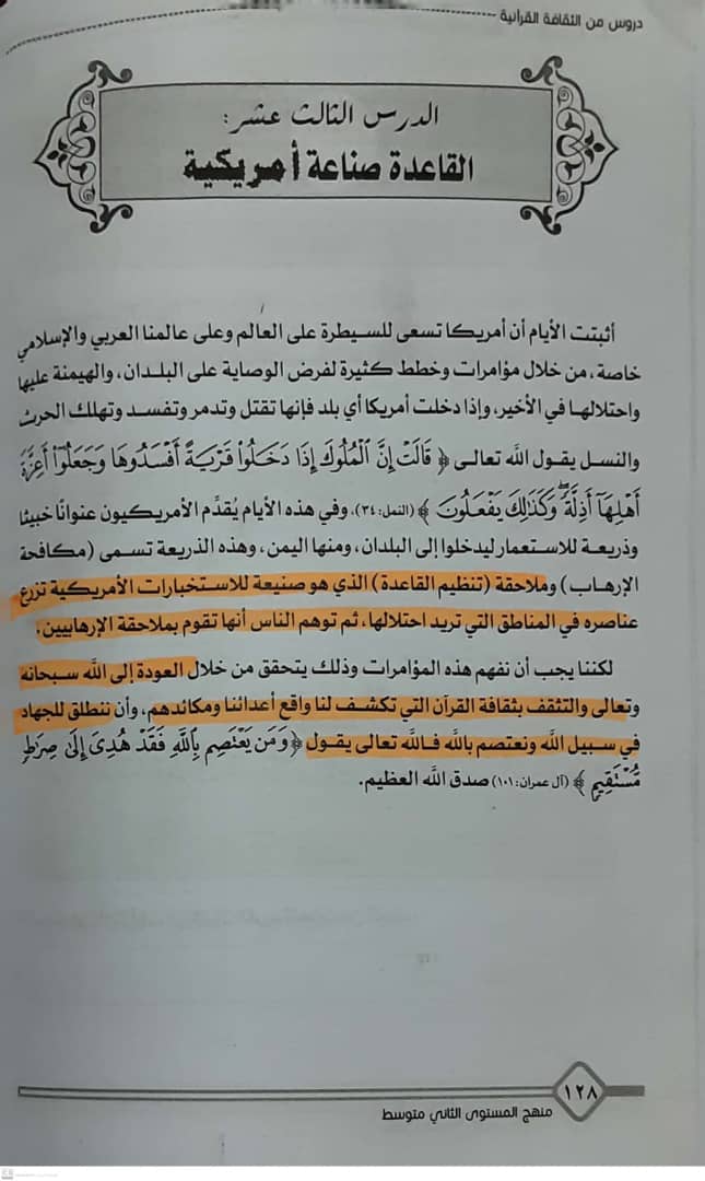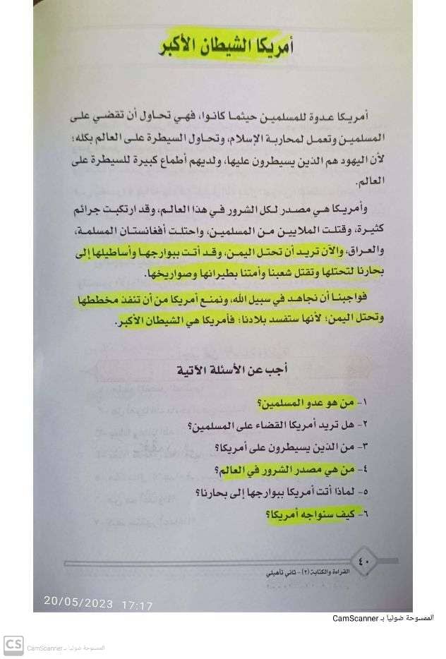 تحوى المناهج الصيفية على مفردات تكرس ثقافة العنف وتقدس الموت وتدعو إلى العنف والكراهية، إضافة الى مفردات تكرس حالة الفرز المجتمعي من خلال تقسيمه إلى مجاهدين وآخرين منافقين.