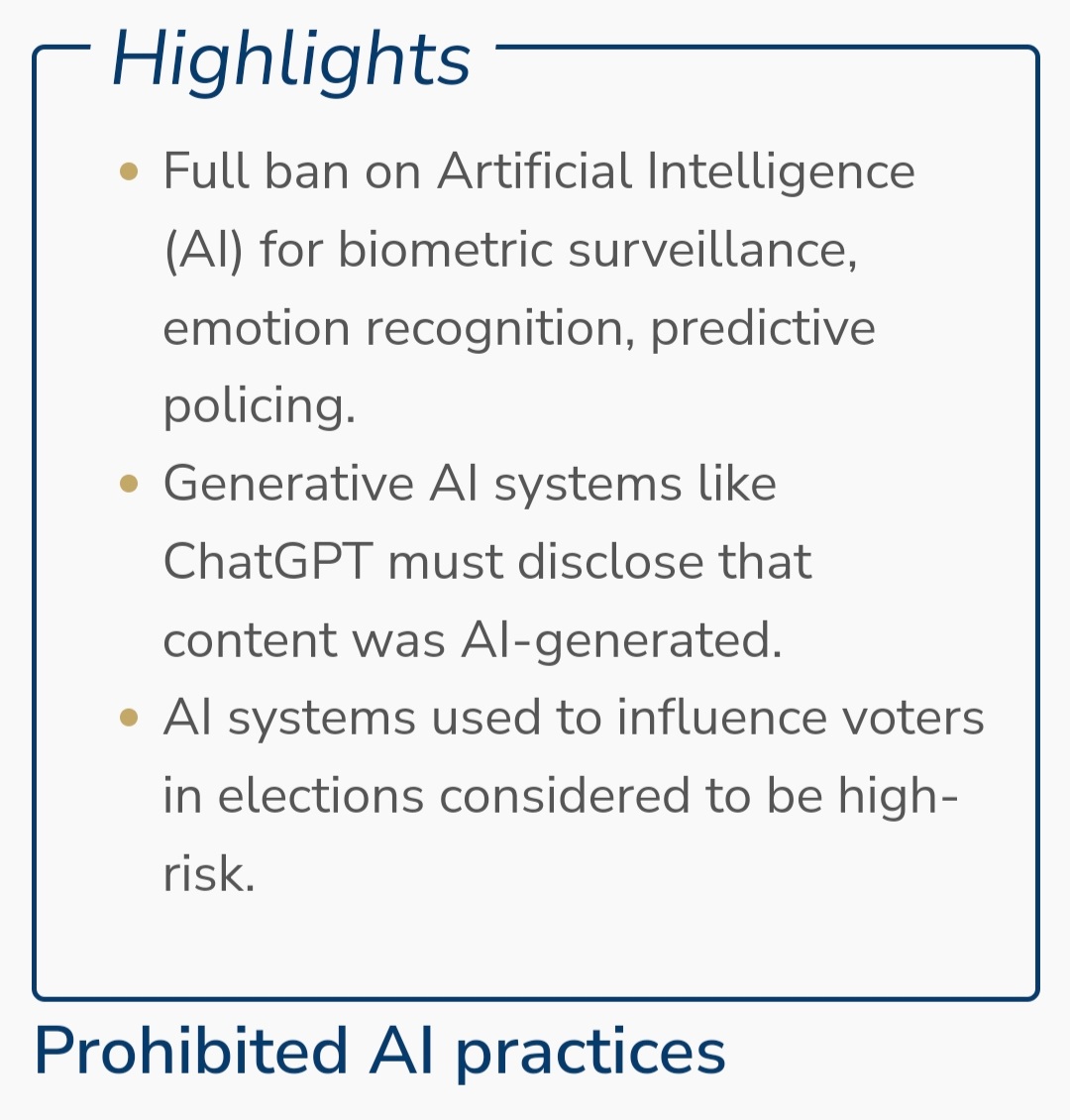 🔅ان القانون تقدم كبير جدا وقوي جدا خاصة في الحظر الكامل على استخدام #الذكاء_الاصطناعي للمراقبة الحيوية، والتعرف على المشاعر، والشرطة التنبؤية.