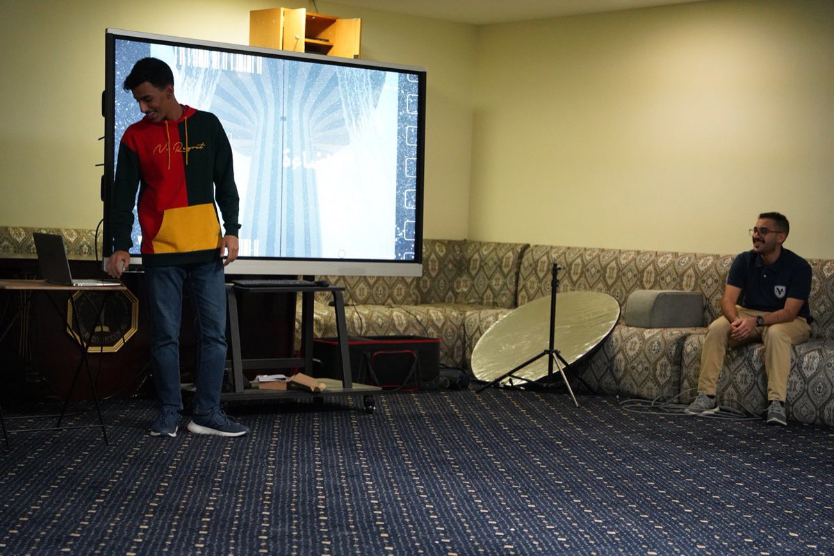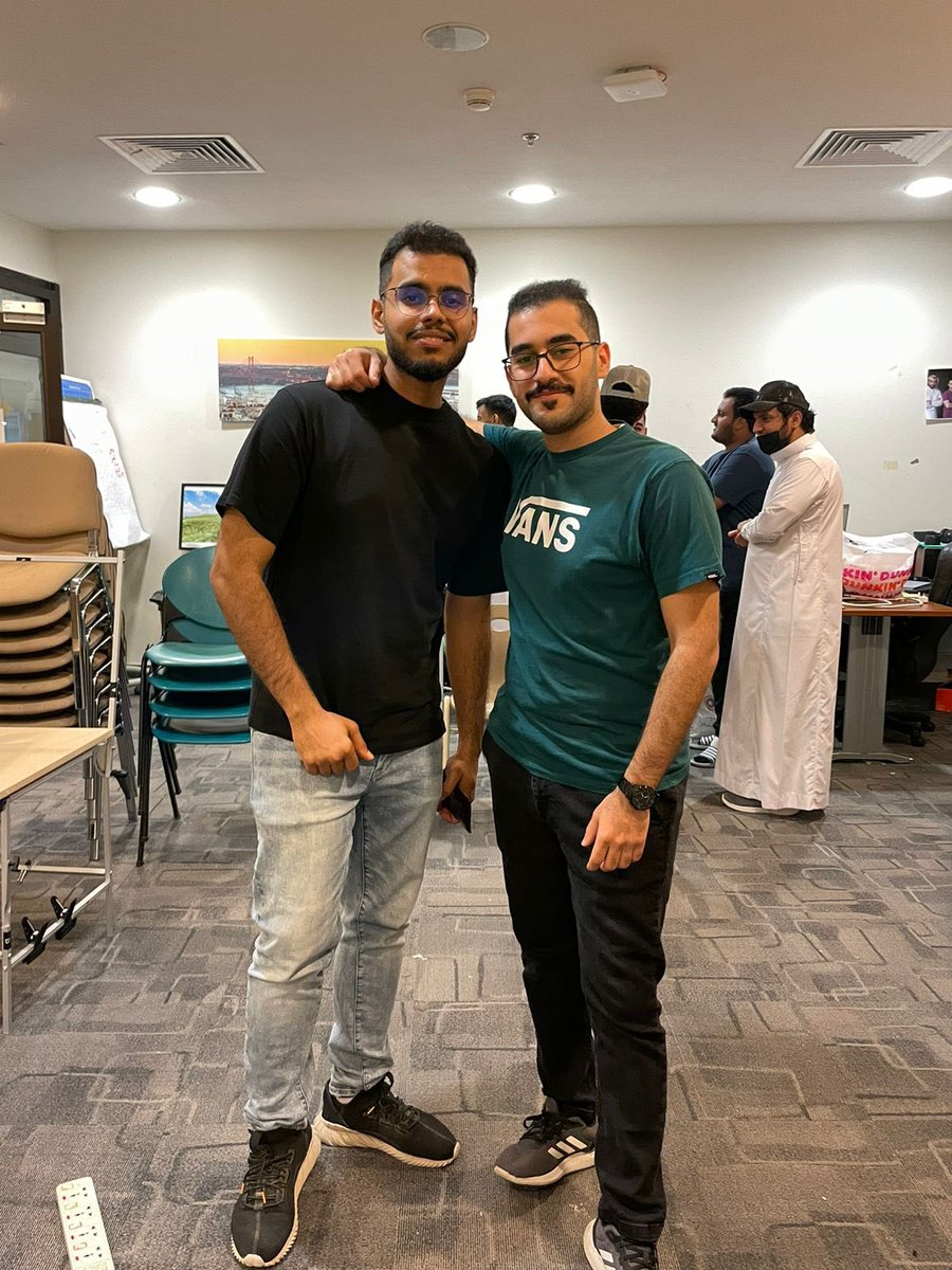 بدأ الترم الثاني، وبدأت بالسؤال عن المسؤولين بالنادي وتكرر علي اسم عبدالرحمن السيد @Alsayed_D7، فتواصلت معه واقترحت عليه استضافة المصور فهد العودة عن بعد، فأعجب باقتراحي واستضافوه. وترك تحركي ومبادرتي اثر في ذهن عبدالرحمن. ومرت الأيام وعادت الدراسة حضورياً في ترم ٢١١.
