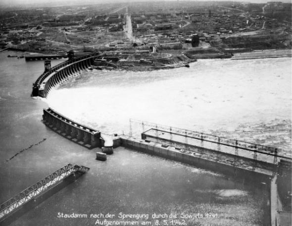 لم يكن شيئا يقف بوجه الفيرماخت آنذاك، استولى الألمان على زاباروجيا بعد 46 يوما من الفيضان، وأمر هتلر بإعادة ترميم السد فقامت وحدات البناء الألمانية بترميمه واستجلبت معدات ألمانية لتشغيل محطة الطاقة الكهرومائية وتوليد الكهرباء.