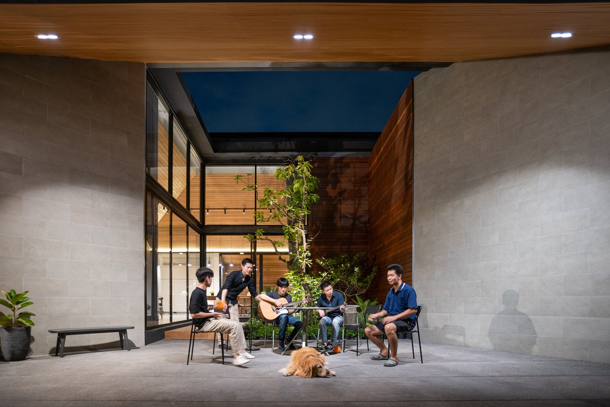 لاحظ كذلك أن الفناء الداخلي اصبح مظللاً ذاتياً دون الإحتياج لمظلات او غيرها