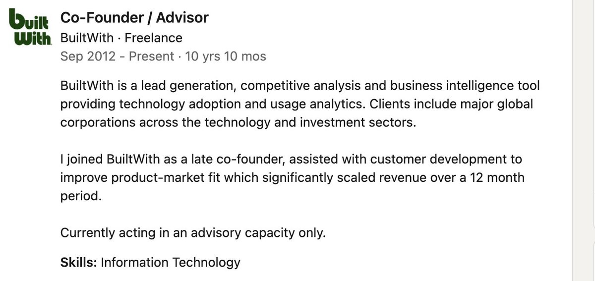 في 2007 بدأت ثورة الشركات الناشئة التقنية في استراليا وهذا جعله يحلل هذه المواقع بطريقة بدائية وهي الدخول علي موقع الشركة التقنية ثم يبدأ في فحص الكود لمعرفة اللغات البرمجية وكذلك السيرفرات المستخدمة وهكذا