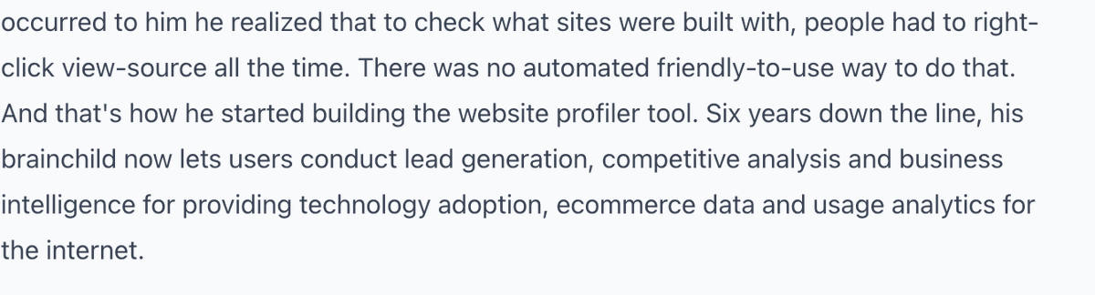 قرر الشاب الاسترالي تقديم #الحل عن طريقة تقديم موقع الكتروني اسماه builtwith.com حيث يحتوي على اللغات التقنية التي تم استخدامها في أشهر المواقع وبالتالي في أقل من دقيقة تحصل علي المعلومات التي تحتاجها بدلا من الطريقة البدائية
