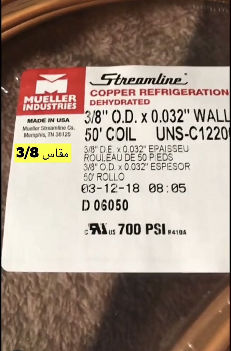 فتجد مكيف ١٨٠٠٠ صيني مثلاً ياخذ مقاسات نحاس مختلفه عن مكيف بنفس الحجم فقط اختلف المصنع او الماركه
