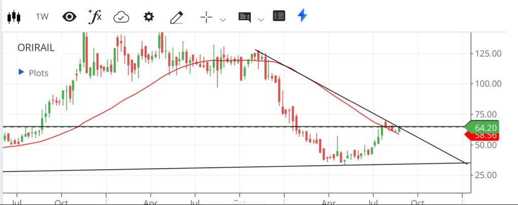 Above 61, it needs to close above 65 for a rally towards 80/88/100+ with 57 cbsl.
