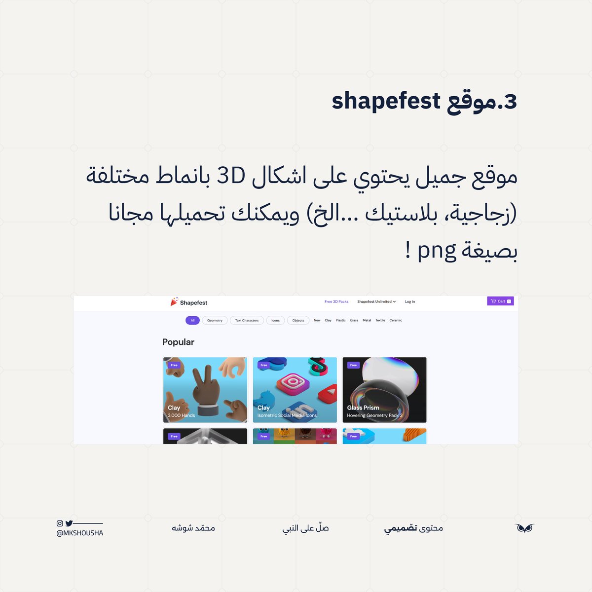 موقع يحتوي على عدد ضخم من الاشكال 3d بانماط مختلفة (زجاجي ،بلاستيك ..)