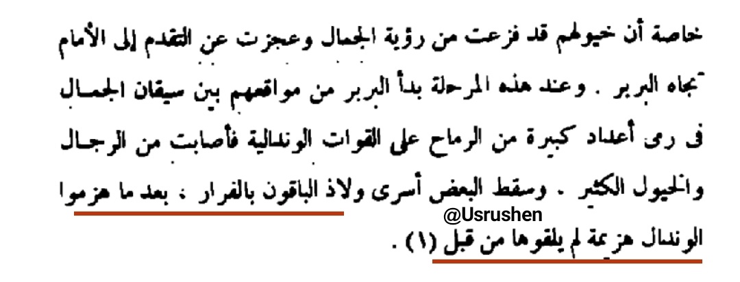 ▪︎ثم يقول الكاتب بعد القضاء على الوندال من الامازيغ ان هذا لم يجعل الروم يستعيدون نفوذهم ابدا :"" على ان القضاء على مملكة الفاندال في شمال افريقيا لم يردها الى الإمبراطورية الرومانية، ذلك لان #الإيمازيغن استمروا في ثوراتهم على الروم "" !