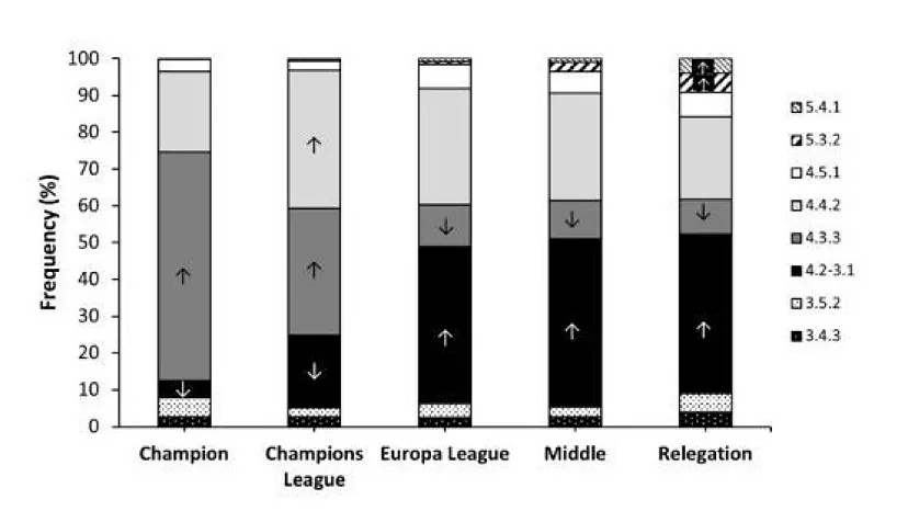 ماركا | فيما يتعلق باستخدام خطة 4-3-3 في الغالب من قبل الفرق البطلة، تقول الدراسة ما يلي: "إن هيكلية 4-3-3 تظهر استعدادًا واضحًا للهجوم مع الاستحواذ على الكرة والتقدم من خلال التمريرات القصيرة، والحاجة إلى لاعبين ماهرين بدرجة عالية بدقة التمرير".