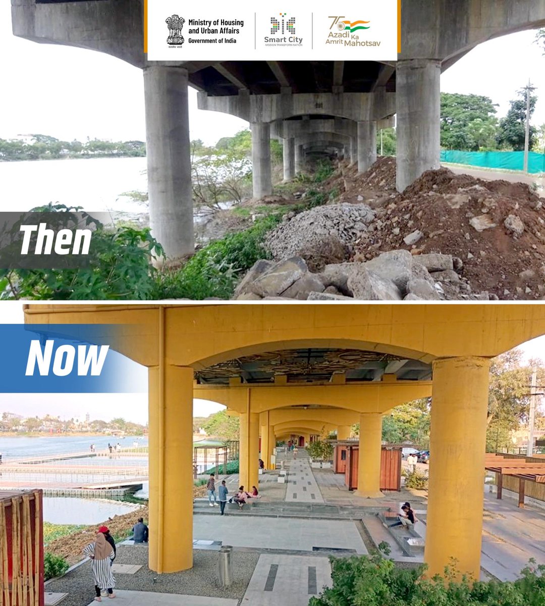#CoimbatoreSmartCity has transformed the Valankulam flyover in the city. Coimbatore has built numerous facilities under the 700-meter flyover, overlooking the #ValankulamLake.