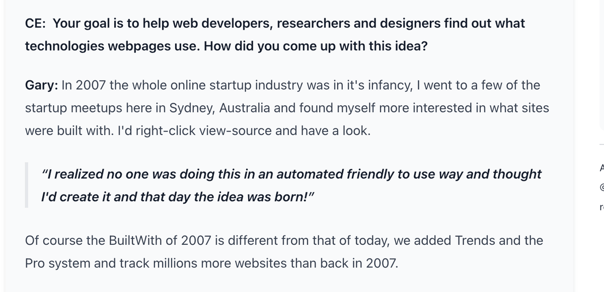 قرر الشاب الاسترالي تقديم #الحل عن طريقة تقديم موقع الكتروني اسماه builtwith.com حيث يحتوي على اللغات التقنية التي تم استخدامها في أشهر المواقع وبالتالي في أقل من دقيقة تحصل علي المعلومات التي تحتاجها بدلا من الطريقة البدائية