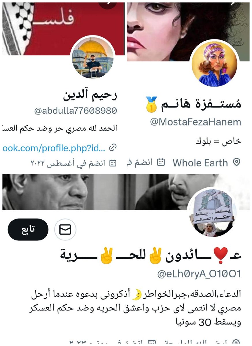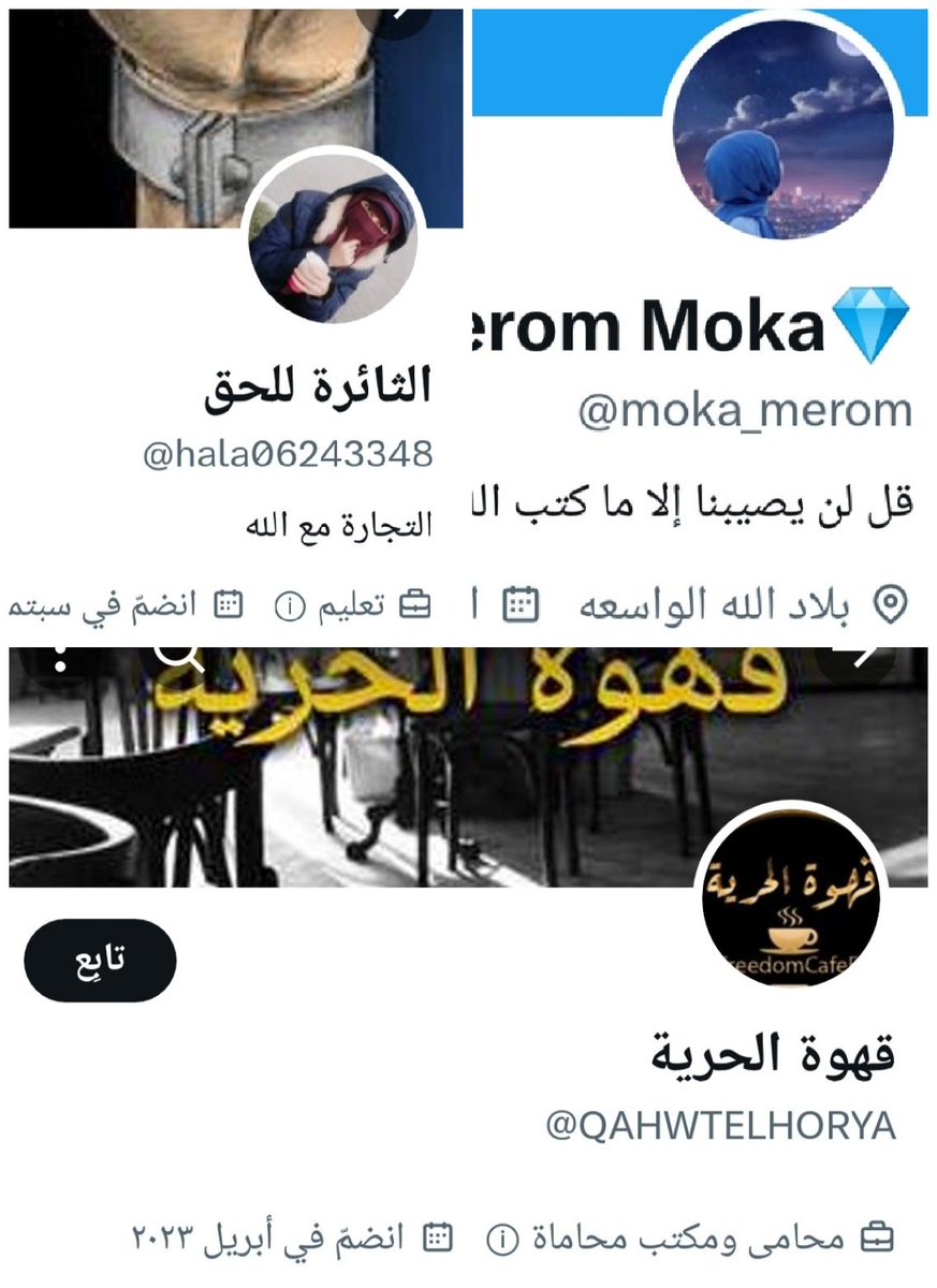 يكشف فيه حقيقه امنجيه ولجان التايم لاين وبالادله وتورطهم بتسليم اخوه واخوات ولما بيقبضوا على حد بيقلدوا حسابه الاصلي ويبعتوا روابط اختراق بالخاص وعمل هشتاجات مسئية وتهديد وشتم كل من لم يرضخ لهم واحباط اي دعوه نزول