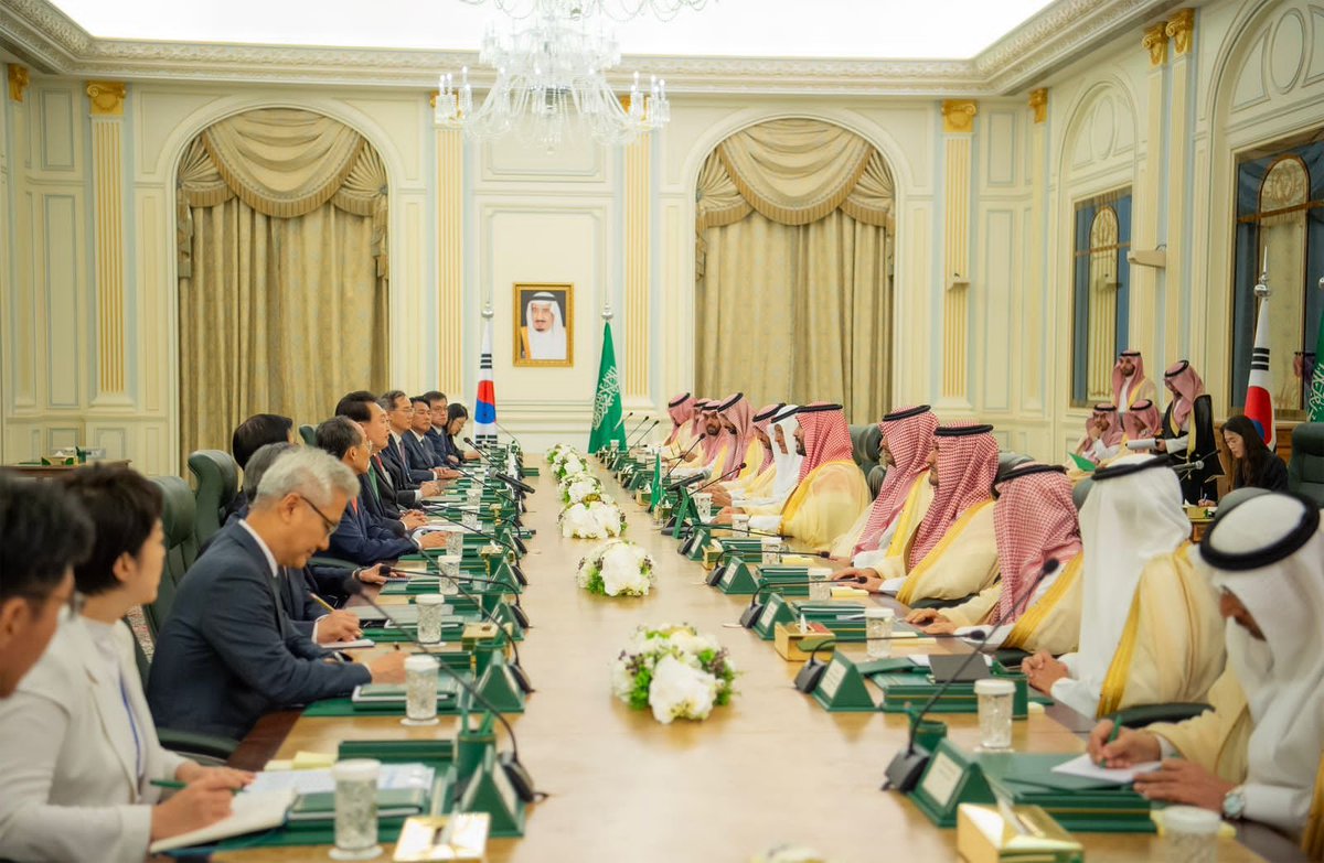 سمو #ولي_العهد وفخامة رئيس جمهورية #كوريا يعقدان اجتماعاً موسعاً وجلسة مباحثات رسمية.