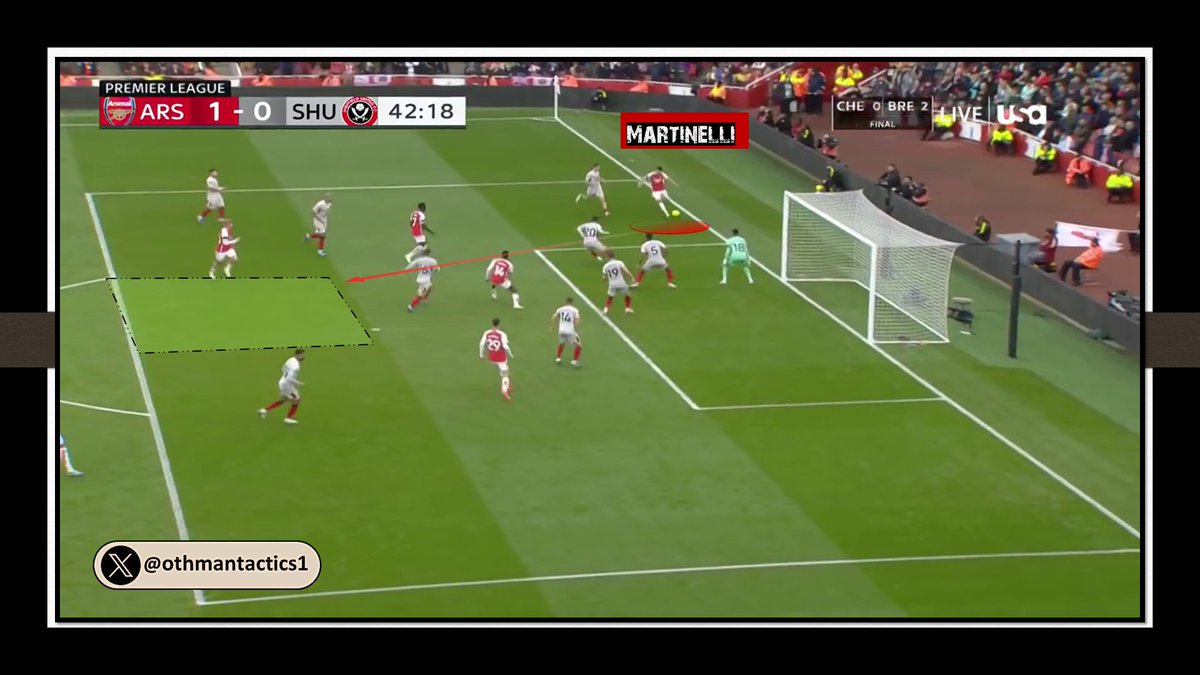 -تلك العرضيه التي يطلبها ارتيتا دائما من جناح الفريق الايسر ان يحاول ان يقدم حل غير تقليدي بلعب العرضيات المفاجأه بالقدم الضعيفه اليسري