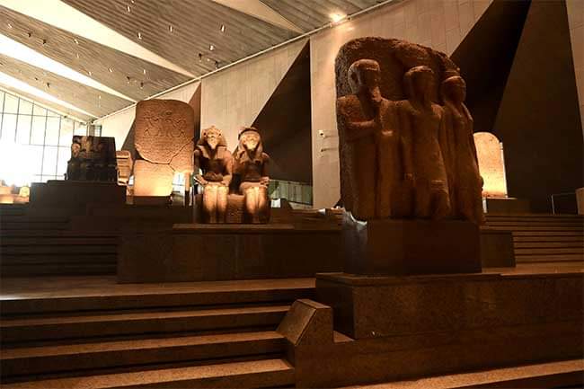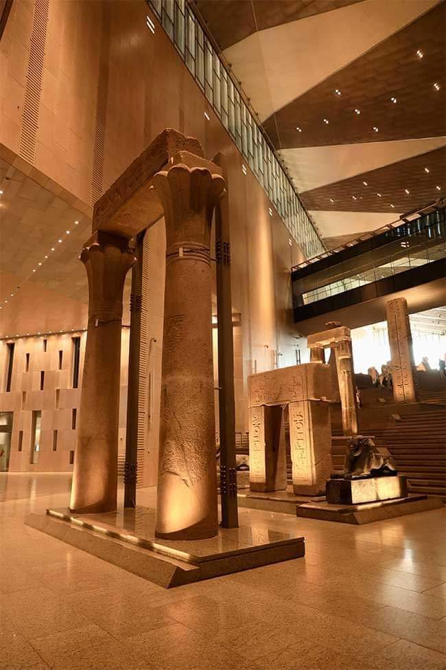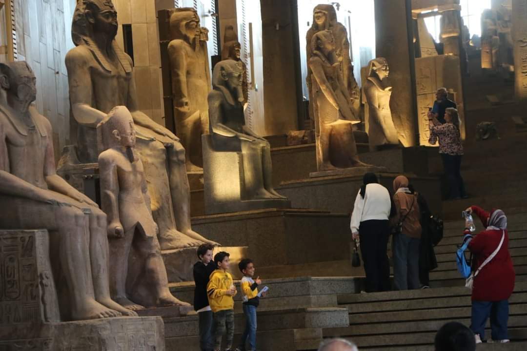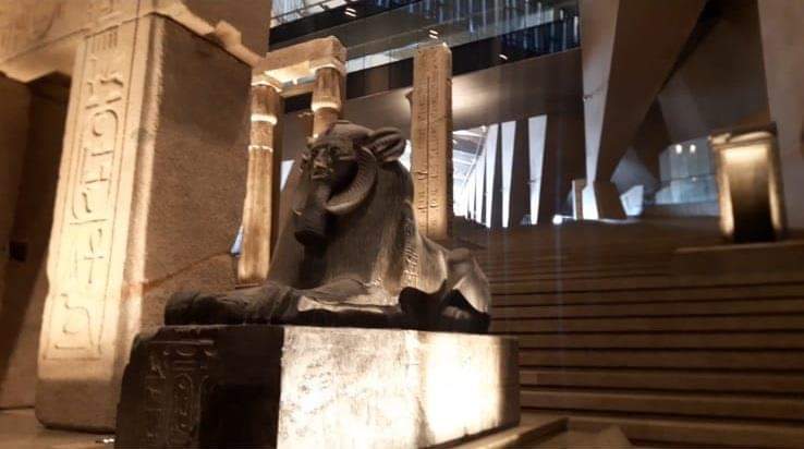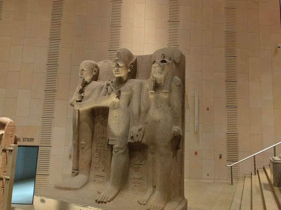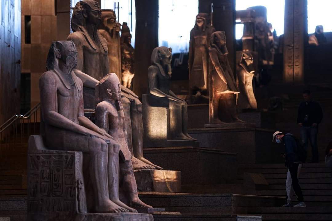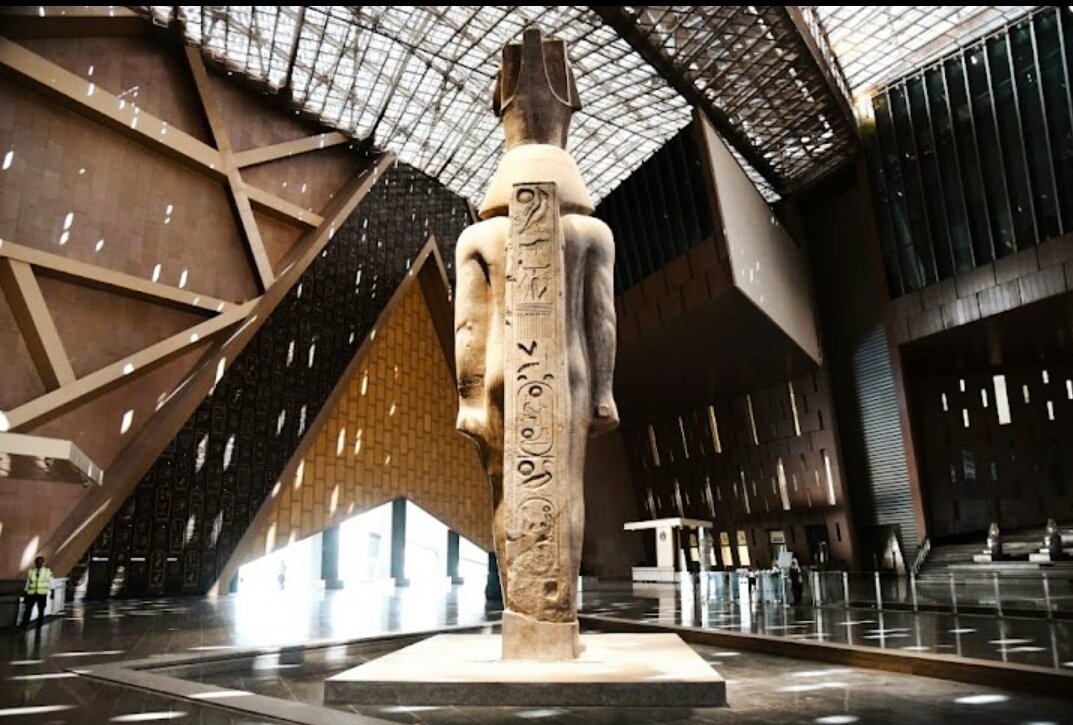 6-الدرج يصعد من البهو الذي فيه تمثال الملك رمسيس الثاني صاعدًا إلى قاعات العرض عبر 105سُلمة ومتدرجًا عبر 4 مستويات وعليه مجموعة من أفضل وأضخم القطع الأثرية الثقيلة التي تجسد روائع فن النحت في مصر القديمة والتي تبدأ من عصر الدولة القديمة وحتى العصر اليوناني الروماني 👇