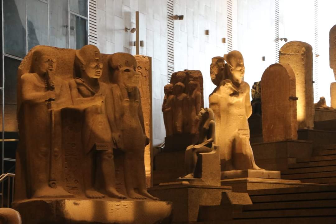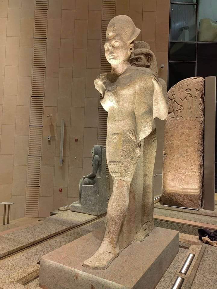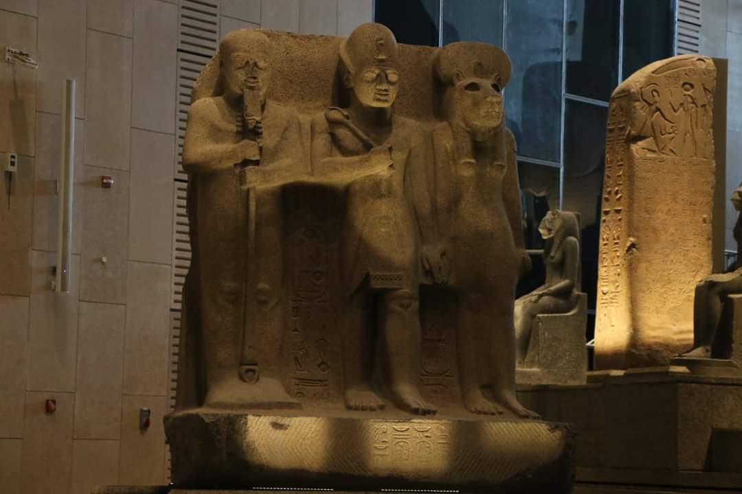 16-تمثال مزدوج للملك أمنحتب الثالث مع المعبود رع حور آختي-تمثال مزدوج للملك رمسيس الثاني والمعبودة عِنات.- تمثالين للمعبود سرابيس من العصر الروماني