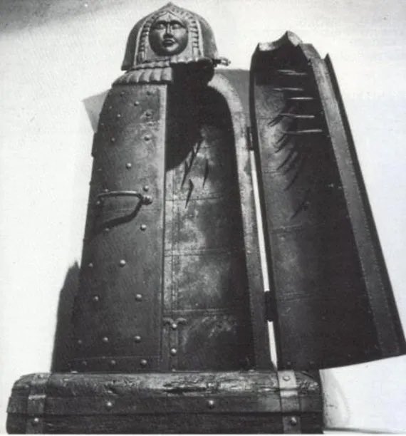 وهي عبارة عن تابوت حديدي مصمم بشكل إحترافي لتعذيب الضحية مزودة من الداخل بمسامير ليست طويلة من أجل الحاق أشد أنواع الألم بالضحية قبل موته