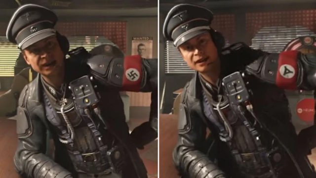 ففي لعبة @wolfenstein النسخة الألمانية هناك تغييرات كبيرة جدًا في اللعبة أبرزها إزالة شعار النازية وتغيير شخصية هتلر