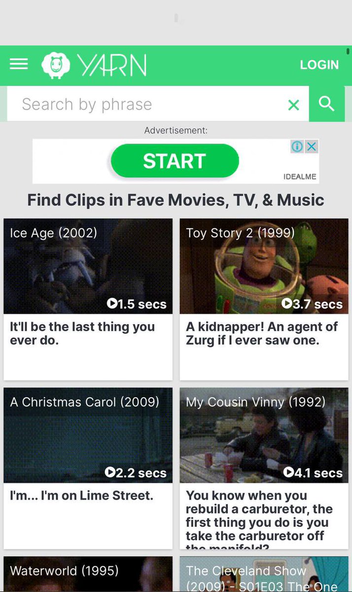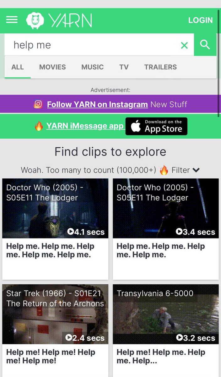 موقع Yarn من الواقع المفيدة في تطوير مهارة #الاستماع_باللغة_الانجليزية ضع اي كلمة او عبارة تبغى تسمعها ويعطيك طريقة نطقها من خلال مقاطع من افلام ومسلسلات وبرامج.