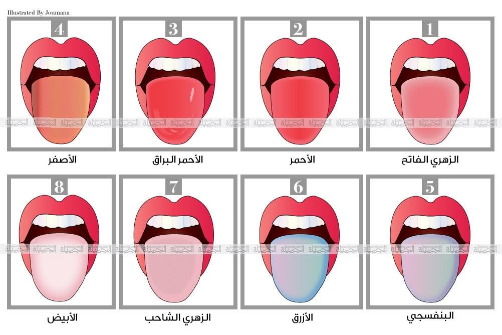 اللسان من أقوى العضلات التي توجد في جسم الإنسان ولون اللسان الطبيعي هو الأحمر الباهت أو الوردي، ولكنه أحيانًا يتحول إلى اللون الأبيض، ويظهر هذا من خلال الفحص