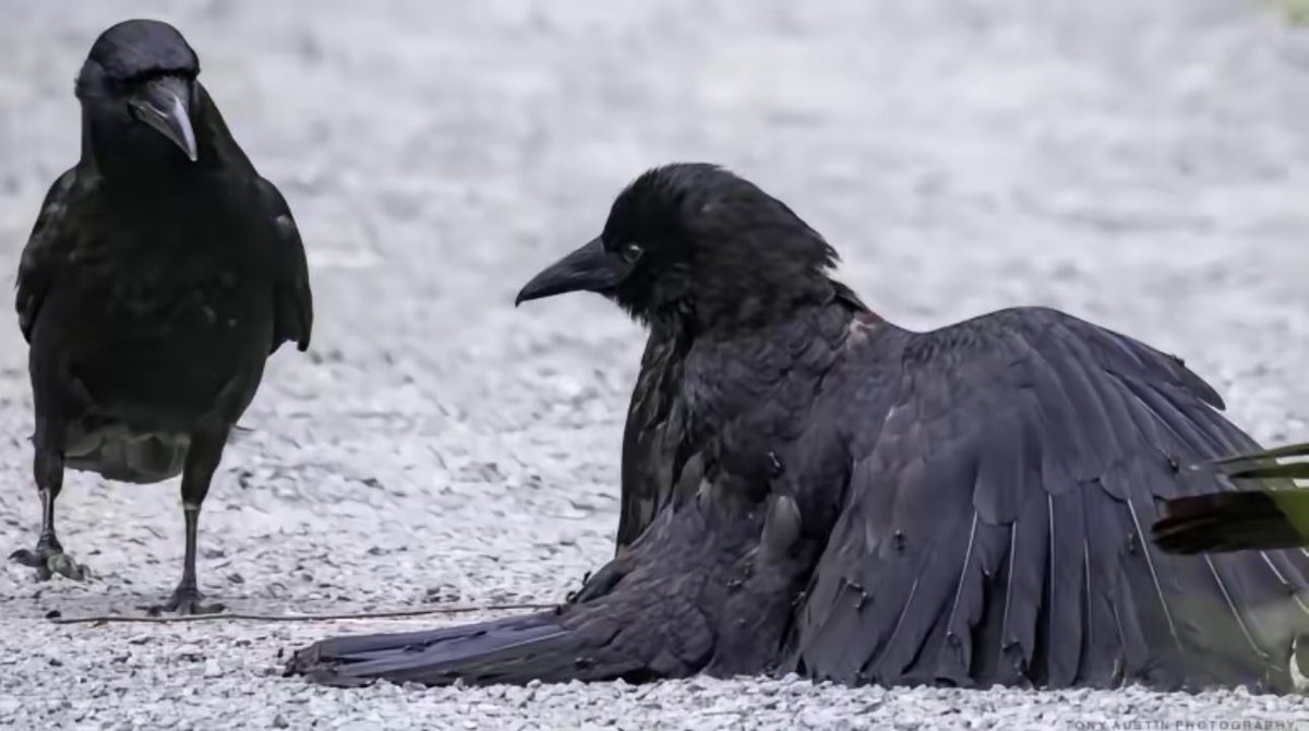 هذه الوضعيه الغريبة التي يتخذها الغراب من الامور الشائعة عند الغربان ولكن الغريب هي طريقة الوقوف نفسها تحت اشعه الشمس