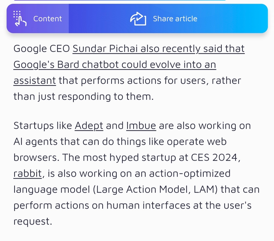 وتعمل الشركات الناشئة مثل #Adept و #Imbue أيضًا على منتجات للذكاء الاصطناعي يمكنهم القيام بأشياء مثل تشغيل متصفحات الويب.