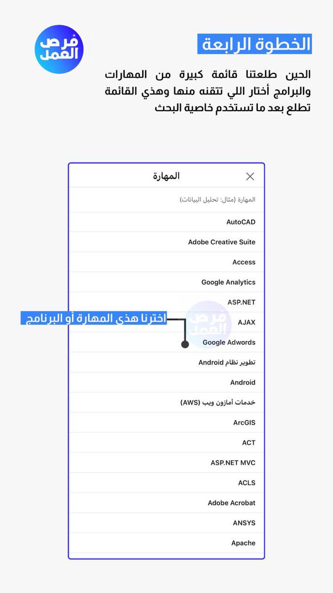 الحين بعد ما استخدمت خاصية البحث، قدامك قائمة المهارات والبرامج. اختار اللي أنت فنان فيها.