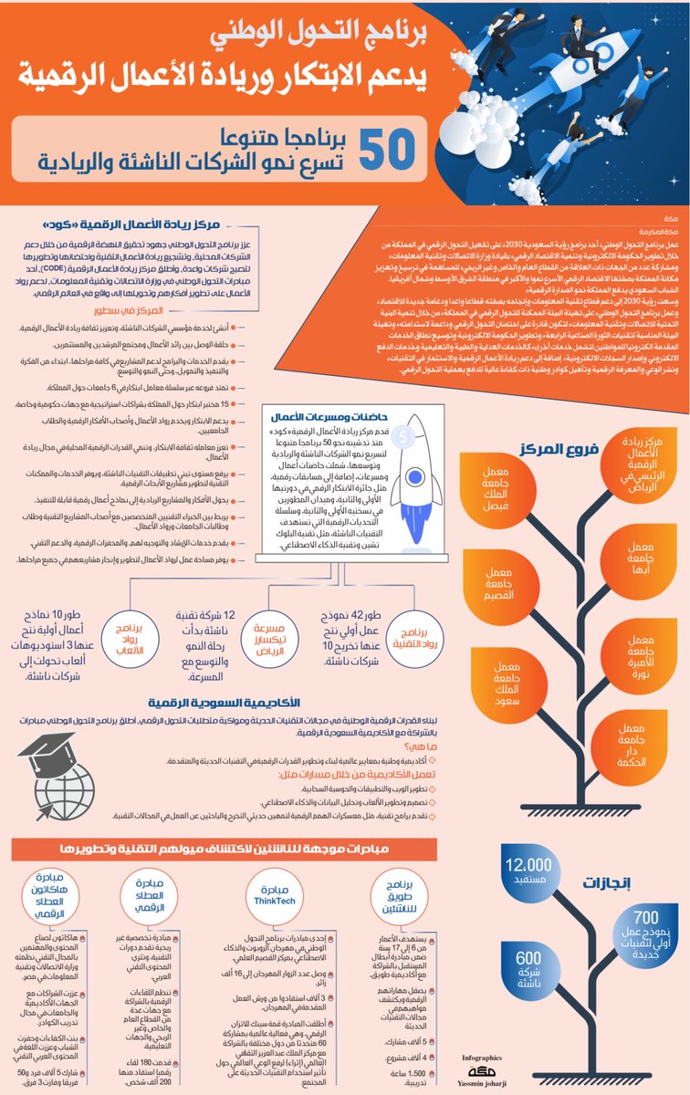 ولدعم أصحاب الأفكار وتحويلها إلى مشاريع تجارية تم إنشاء 7 معامل ابتكار حول المملكة تخدم رواد الأعمال وأصحاب الأفكار الرقمية والطلاب الجامعيين استفاد منها أكثر من 15 ألف مستفيد و 792 شركة ناشئة كما تم تقديم 150 نموذج عمل رقمي أولي حتى نهاية 2023 إلى جانب تنظيم أكثر من 50 برنامج تشمل حاضنات أعمال - مسرعات أعمال - مسابقات رقمي.