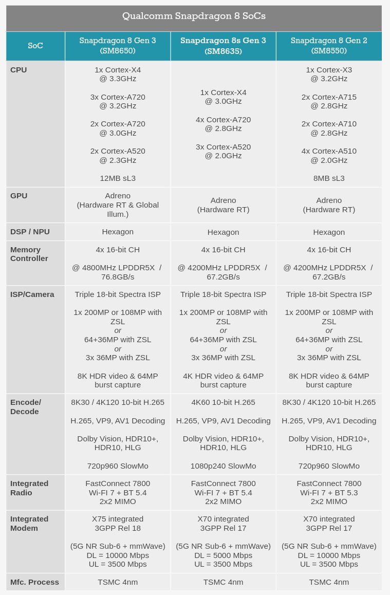 أعلنت كوالكوم رسميا عن معالجها الجديد #Snapdragon8sGen3 #SM8635 المخصص للهواتف العليا الارخص ثمنا بـ :
