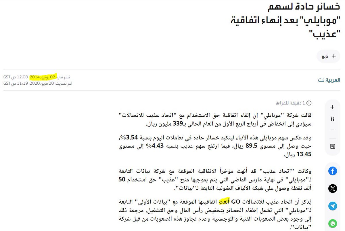المشكلة: أن موبايلي أثبتت الإيرادات في القوائم المالية بينما العقد غير ملزم (لأن متطلبات عذيب "المنافذ" غير جاهزة ويحق لعذيب التراجع) واثبات الإيراد بهذه الطريقة مخالف للمعايير المحاسبية