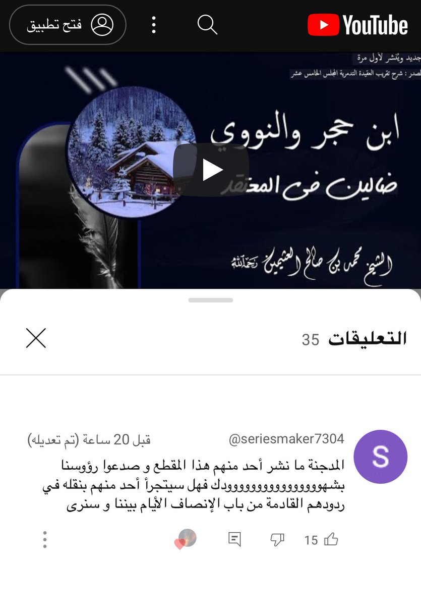 رأيت أحد المخالفين وضع مقطعا للشيخ محمد بن صالح العثيمين عن الحافظ أبي زكريا النووي، وهذا المقطع معنون بعنوان: (ينشر لأول مرة: ابن حجر والنووي ضالين في المعتقد).