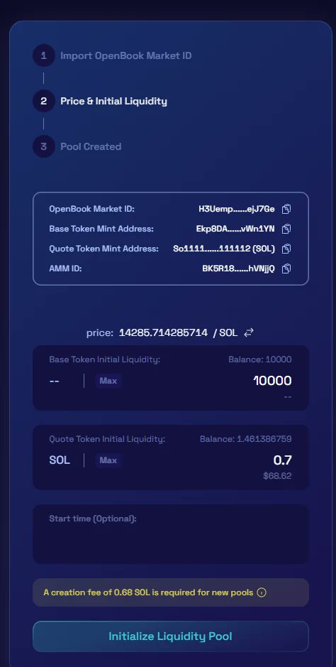 🟩الخطوة الاخيرة هي اضافة السيولة للعملة على احدى منصات التداول على سولانا (Raydium او Jupiter) ولنقوم بهالشي منعمل هالخطوتين
