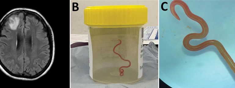 كشف التصوير عن وجود دودة طفيلية تعيش في دماغها كانت تعيش في الفص الجبهي الأيمن من دماغها وأصبح التدخل الجراحي هو الخيار الوحيد، ونجح الأطباء في إزالة الدودة المستديرة التي يبلغ طولها 8 سم (80 ملم) وقطرها 1 ملم