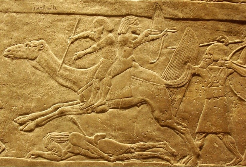 ويشير نقش #شلمنصر كذلك إلى أن الملك جندب العربي القادم من دوماتو (دومة الجندل شمال السعودية) جهز جيشه بألف فارس يمتطون الإبل للمشاركة في هذه المعركة..