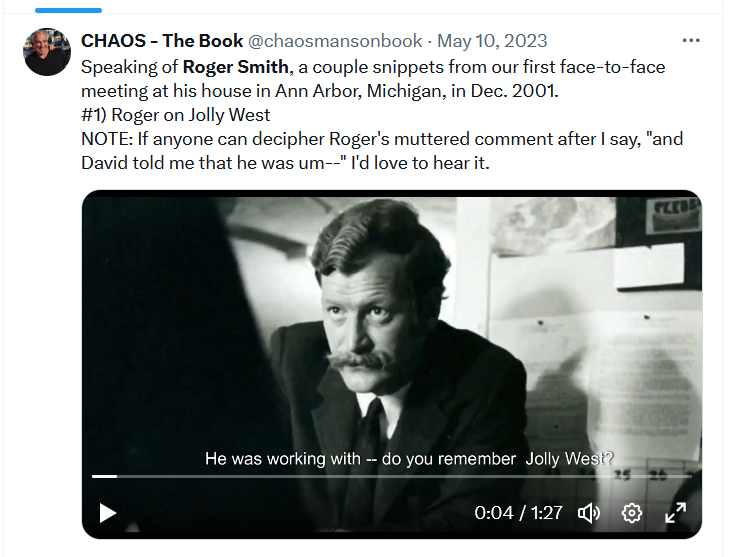 "In 1967, Manson’s San Francisco parole officer was Roger Smith, a criminology Ph.D. whose parolee responsibilities suddenly dropped from forty clients to just one—Manson. Although Manson was repeatedly arrested, Smith never revoked his parole."..