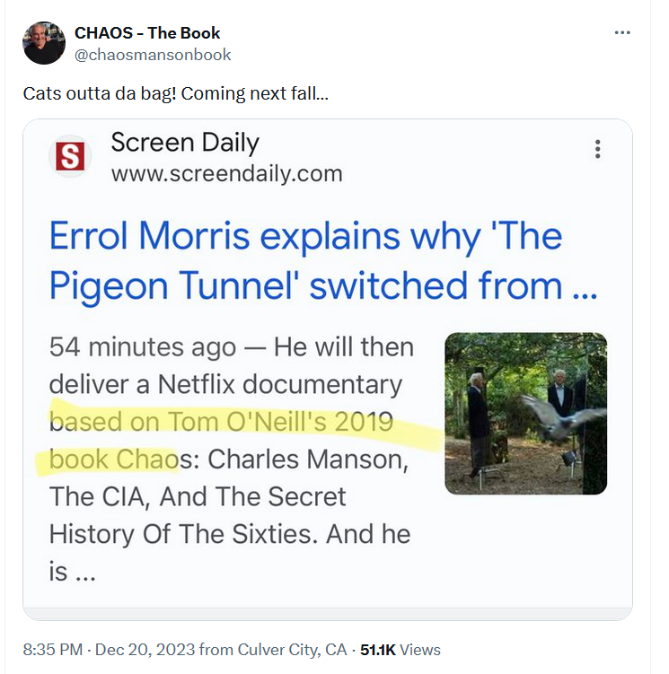 Apparently Errol Morris is adapting CHAOS for Netflix 🍿