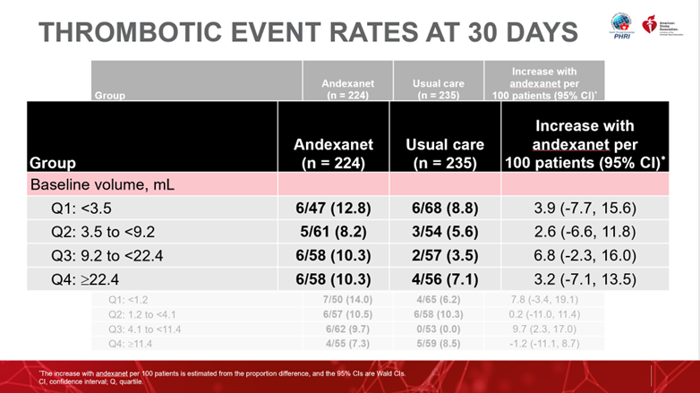 6b) Following a planned interim assessment of efficacy (n=450), an independent #DSMB concluded #andexanet showed superior hemostatic efficacy after 1mo f/u vs usual care, & stopped the trial early.