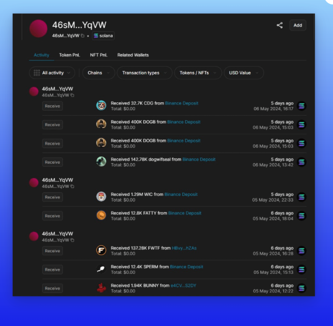 - Tracking Insider/Whale wallets.