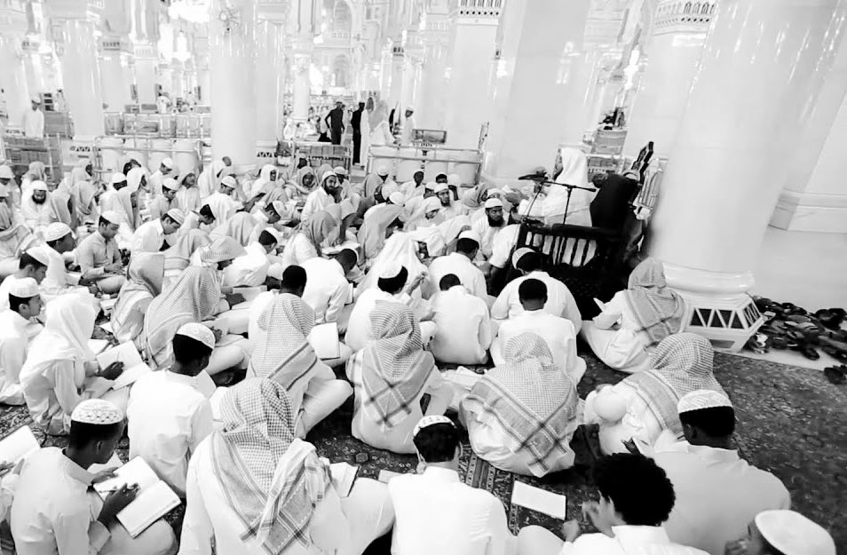أثناء عمل الرئيس عبدالعزيز في مكة المكرمة، كان المسجد المكي الشريف بمثابة الجامعة العلمية العصرية، فقد كانت تنتشر حلقات العلماء في أروقته وزواياه فانضم الشيخ إلى حلقات أهل العلم بعد الفجر، وبعد العصر، وبعد المغرب، وبعد العشاء، فيحضر في مجالس شيخه المحدث عبدالحق الهاشمي، وكذلك الشيخ سليمان الحمدان، وكانت أكثر ملازمته لهذين الشيخين، ثم يحضر مع ذلك حلقات الشيخ عبدالله البسام والشيخ حسن مشاط والشيخ محمد الصومالي والشيخ يحي آبادي وغيرها من حلق الذكر والتعليم .