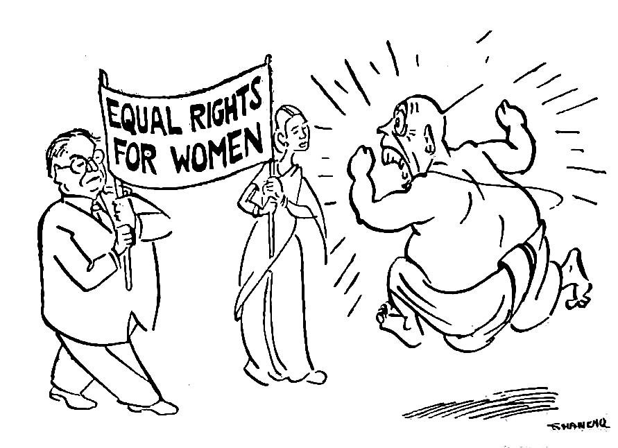 Dr Ambedkar comes to cure the disease of the patient ‘Hindu Society’ through the medicine Hindu code bill, but the patient shows fists to Dr Ambedkar. Cartoon was published in National Herald on 26th February 1949, drawn by cartoonist Bireshwar.