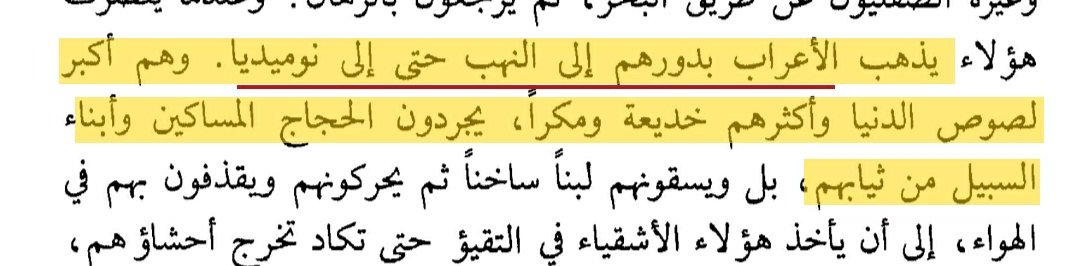 ☆▪︎ثم يكمل ما يفعله الاعراب في الصحراء : ""فيبحث الأعراب عما قد يكون في القيء من نقود، لأن هؤلاء #البهائم_المتوحشة يتهمون المسافرين ببلع نقودهم عندما يقتربون من هذه الصحراء حتى لا يعثر عليها معهم""!!