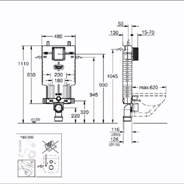 عند التأسيس الأولي يجب ان تكون ارتفاع المسامير الحامله للكرسي من مستوى وجه البلاط من أعلا ( ٣٢ - ٣٣ ) سم وهذا الارتفاع المثالي ويقبل النزول والطلوع عن ذلك ٢ سم