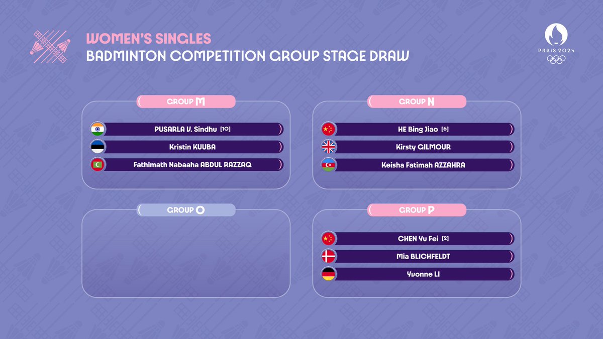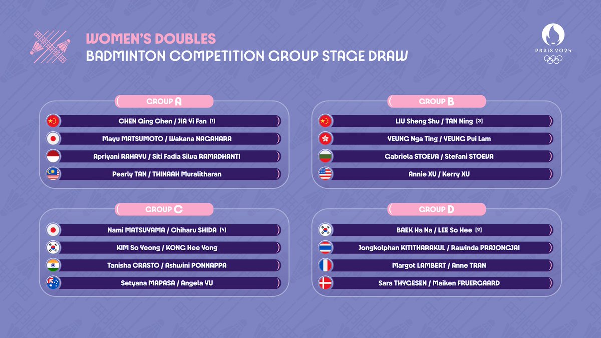 #Badminton's ๐ธ @Paris2024 @Olympics groups are set! ๐งต
