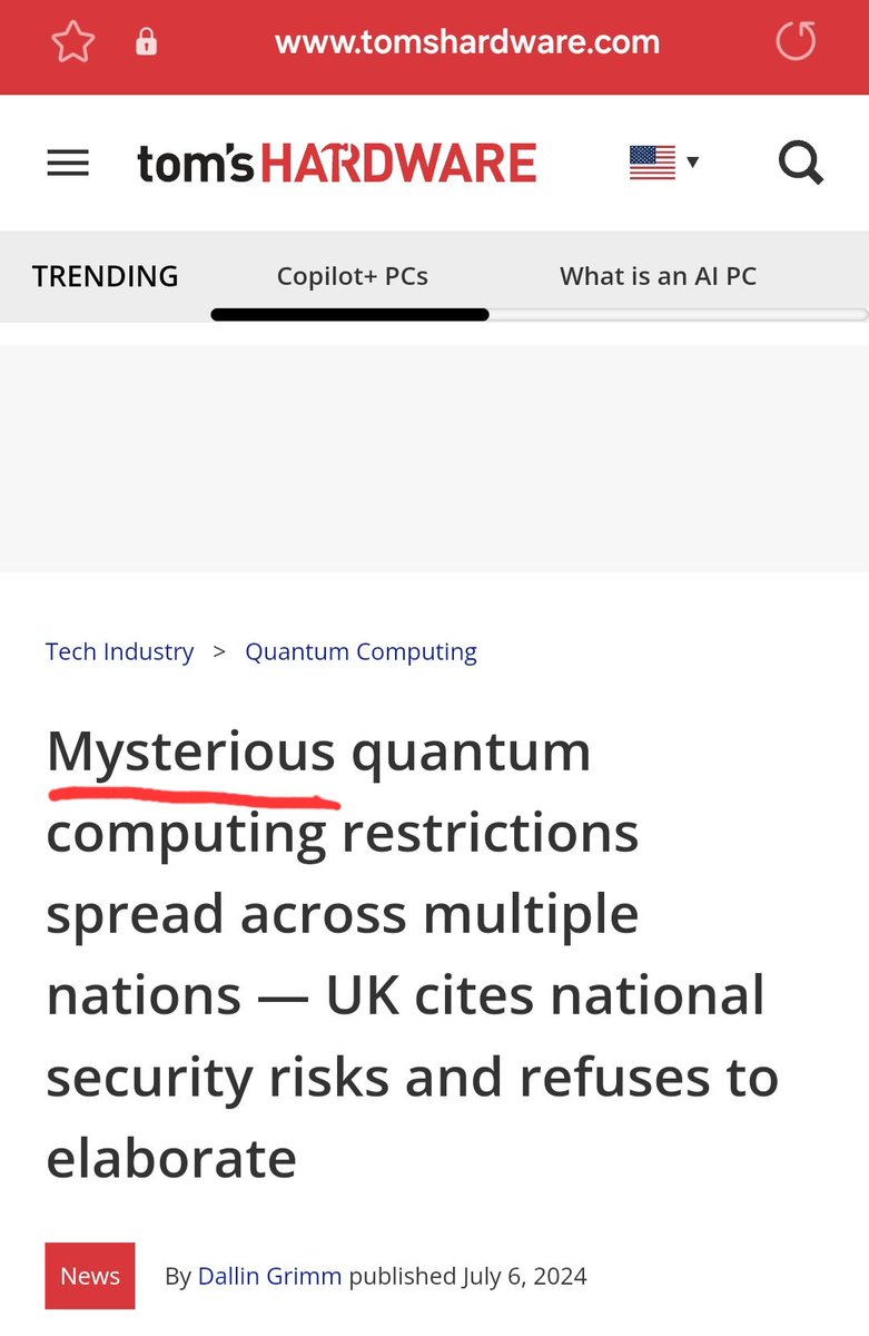 وان خيط حظر اجهزة الكومبيوتر #الكمومية بدأ في #بريطانيا ثم انتشر للدول الاوربية واحدة تلو الاخرى ثم انتقل الى قارة امريكا الشمالية.