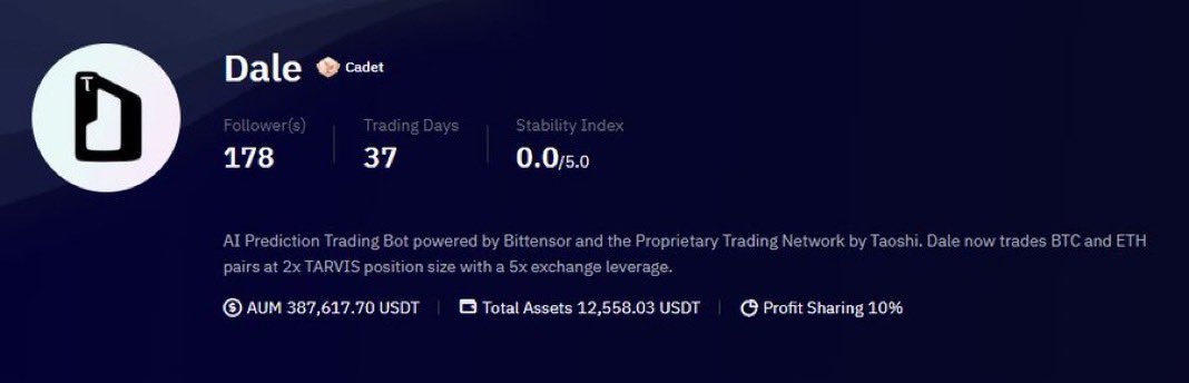 @tradewithdale هو روبوت نسخ تداول بالذكاء الاصطناعي مدعوم من $TAO Subnet 8