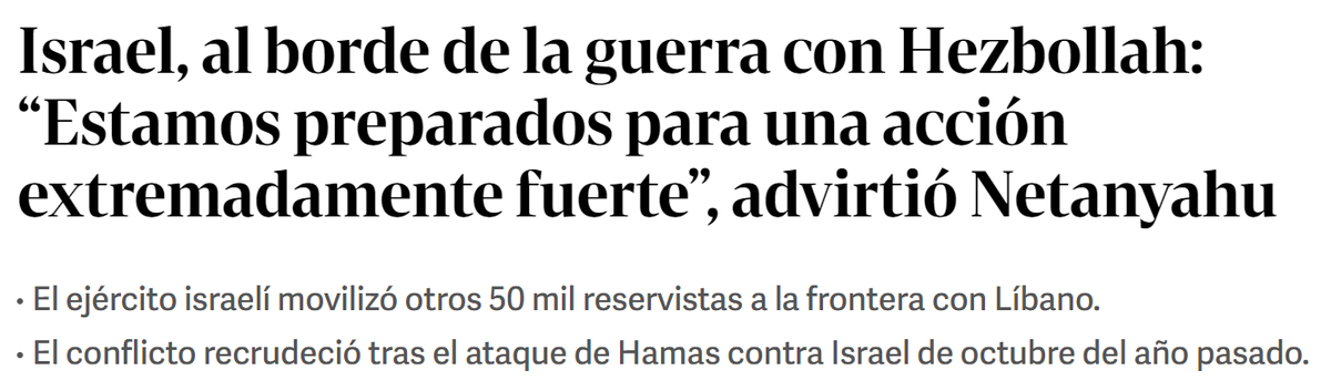 Israel, al borde de la guerra con Hezbollah: "Estamos preparados para una acción extremadamente fuerte", advirtió Netanyahu