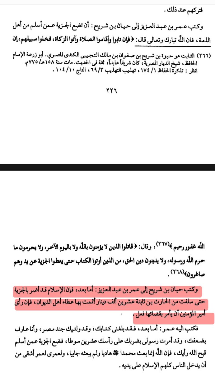 فخاطب عبد الملك بن مروان و ابن حجيرة عمر ابن عبد العزيز قائلين اعيذك بالله يا امير ان تكون اول من يسقط الجزية عن من اسلم