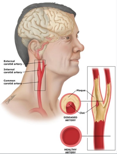 - الحبسة أو الإهمال (Aphasia or Neglect): اعتمادًا على الجانب المصاب، يمكن أن يظهر المريض Aphasia (فقدان القدرة على الكلام) إذا كانت الإصابة في الجانب الأيسر، أو إهمالًا/Neglect (إهمال نصف الجسم) إذا كانت الإصابة في الجانب الأيمن.