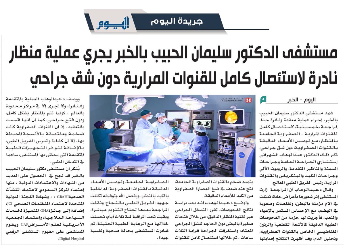 نحمد الله على فضله و توفيقه .. هذه أحدى عمليات (القنوات المرارية / الصفراوية الجامعة) التئ أجرينها بتقنية #المناظير (قليلة التدخل) بالإضافة لعمليات ( #الكبد و #البنكرياس) التي نجربها بتقنية #المنظار.. مما يساعد في سرعة تعافي #المرضى و خروجهم من #المستشفى بوقت قياسي و تجنب المضاعفات المتحملة من الالتهابات المصاحبة لعمليات الجروح التقليدية الكبيرة لمثل هذا النوع المعقد من العمليات … وهذا بفضل الله ثم دعم قيادة حكومتنا الرشيدة 🇸🇦 لنواصل تسجيل تقدم كبير في مجال جراحات #الأورام والكبد والبنكرياس بأحدث #التقنيات…